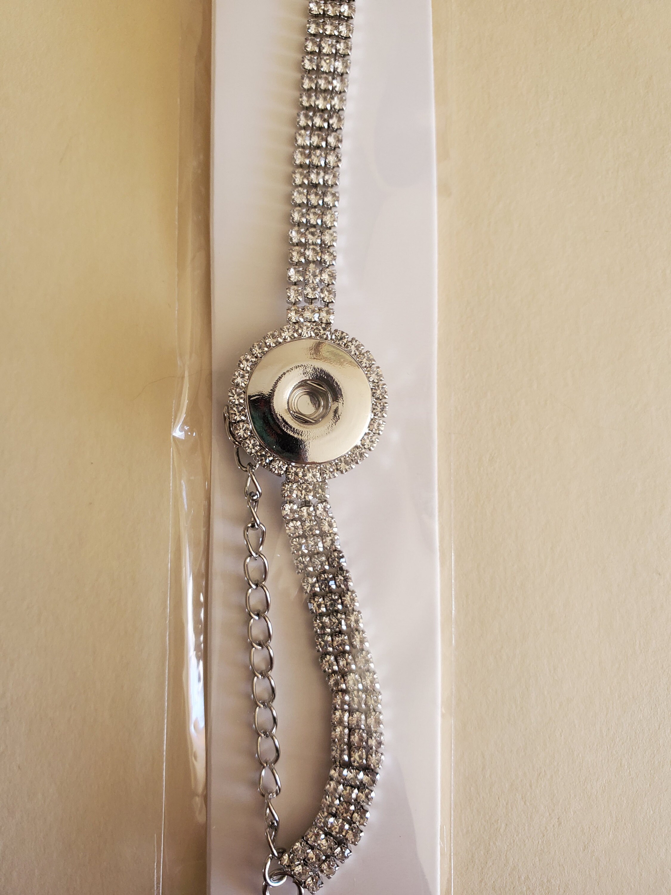 Snap Bracelet, Snap Jewelry Bracelet, Rhinestone Triple Band Snap Bracelet, Silvertone, Fits 18mm Ginger Snaps, Noosa, Magnolia & Vine B4-GB, 18mm Snap Bracelet.